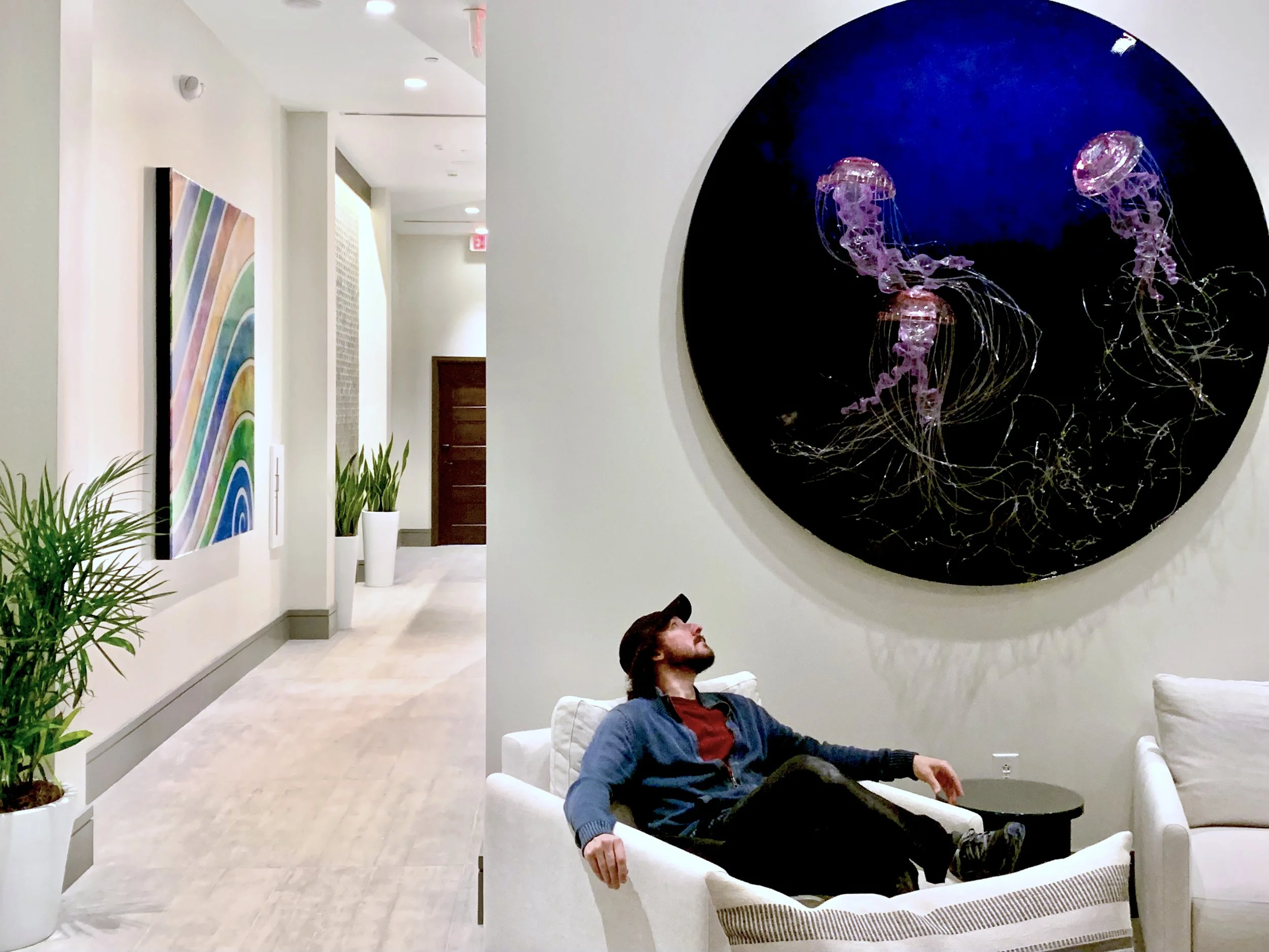 Kevin Moss is a multimedia sculptor and painter, based in Virginia. Known for his unique cast-resin jellyfish wall-sculptures, process-based abstract paintings, and site-specific, large-scale installations and sculptures that have a focus on the natural world and our connections with the environment… through playful and imaginative twists.